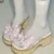 2025 nuove pantofole rosa da donna con fiocco estivo alla moda scarpe Lolita con suola spessa sandali con fondo in spugna per ragazze versatili e Cool